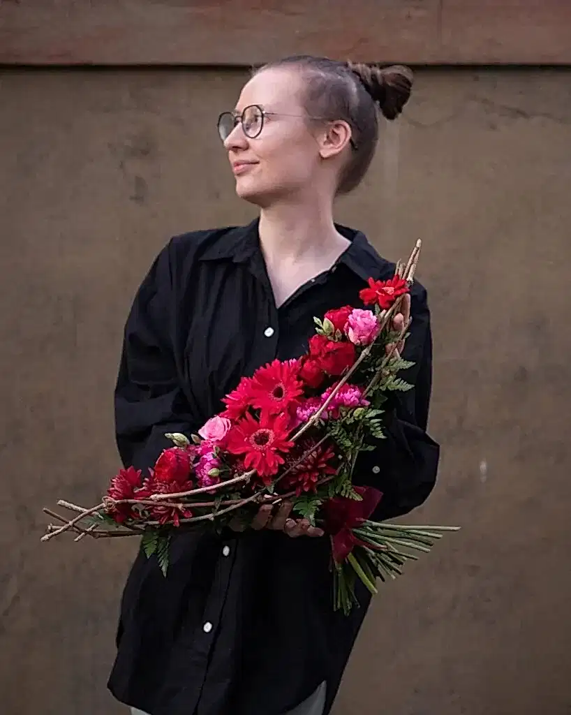 Флористика даёт мне коммуникацию.Я езжу по местным магазинам, общаюсь с флористами. Pin-Up я просто стою и наблюдаю за их процессами, иногда они сами меня спрашивают о каркасных букетах.