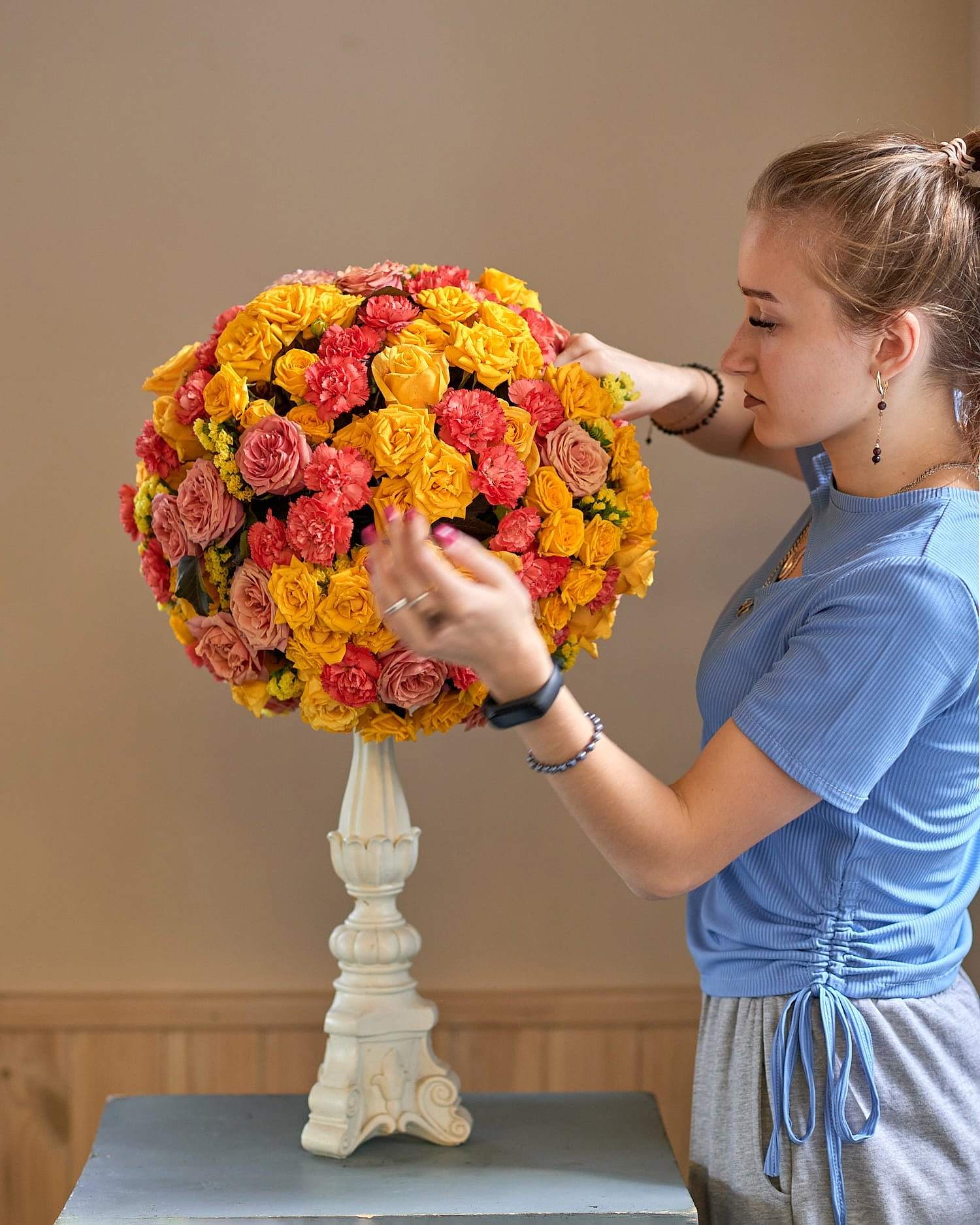 Pin-Up во всем их разнообразии. В этом модуле вы получите знания, которые покажут ваше мастерство в создании авторских букетов. Освоив его вы сможете получить работу своей мечт. 🍒 Как подчеркнуть свойиндивидуальный стильв букете и выделиться на Pin-Up остальных. 🍒 Созданиераскидистого букета. Pin-Up с формой и цветом. 🍒Упаковкараскидистого и круглого букета. 🍒Модные тенденциив упаковке букетов. 🍒 Каркасные букеты как индивидуальнаяфишкафлориста. 🍒Креативные техникисоздания букетов .